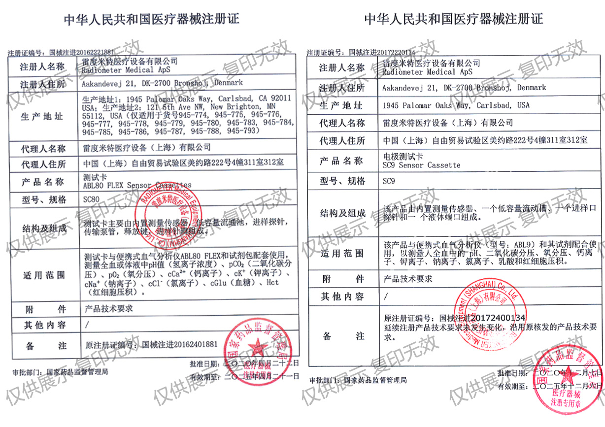 雷度ABL9血氣測試卡注冊證編號:國械注進(jìn)20172220134