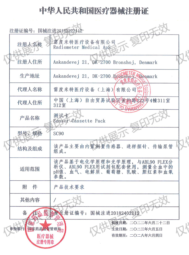 雷度ABL90血氣測試卡注冊證編號:國械注進(jìn)20182222112