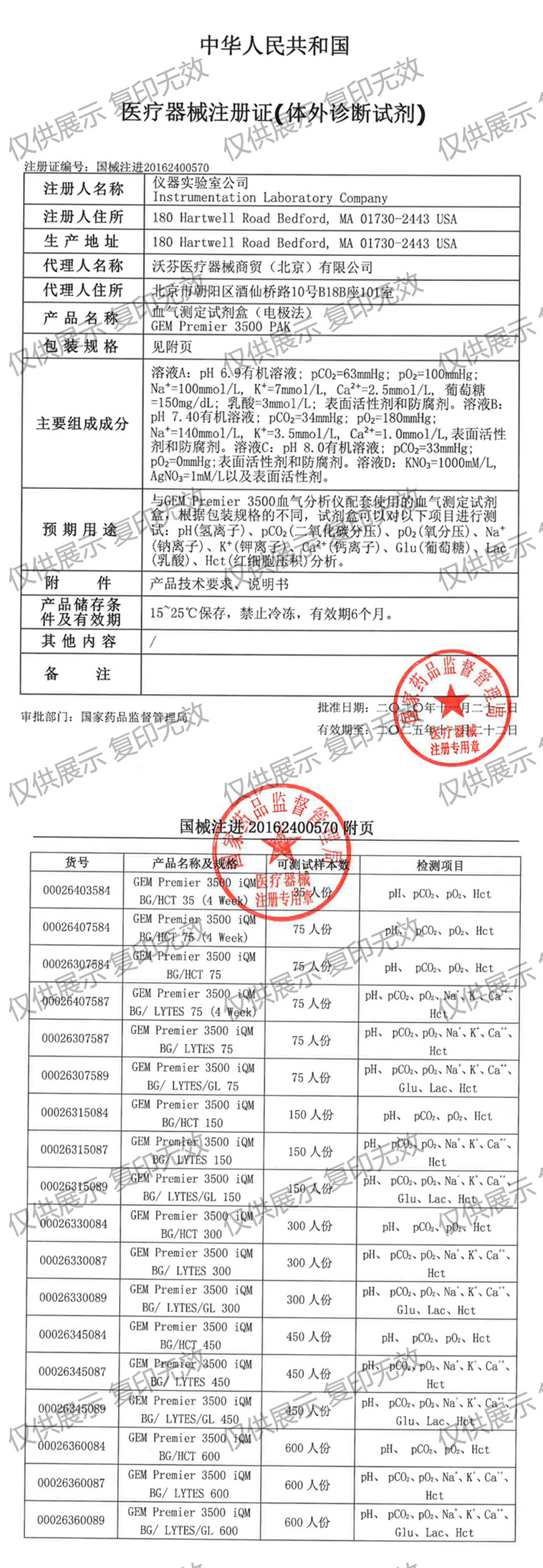 沃芬GEM3500血?dú)庠噭┖凶?cè)證編號(hào):國(guó)械注20162400570