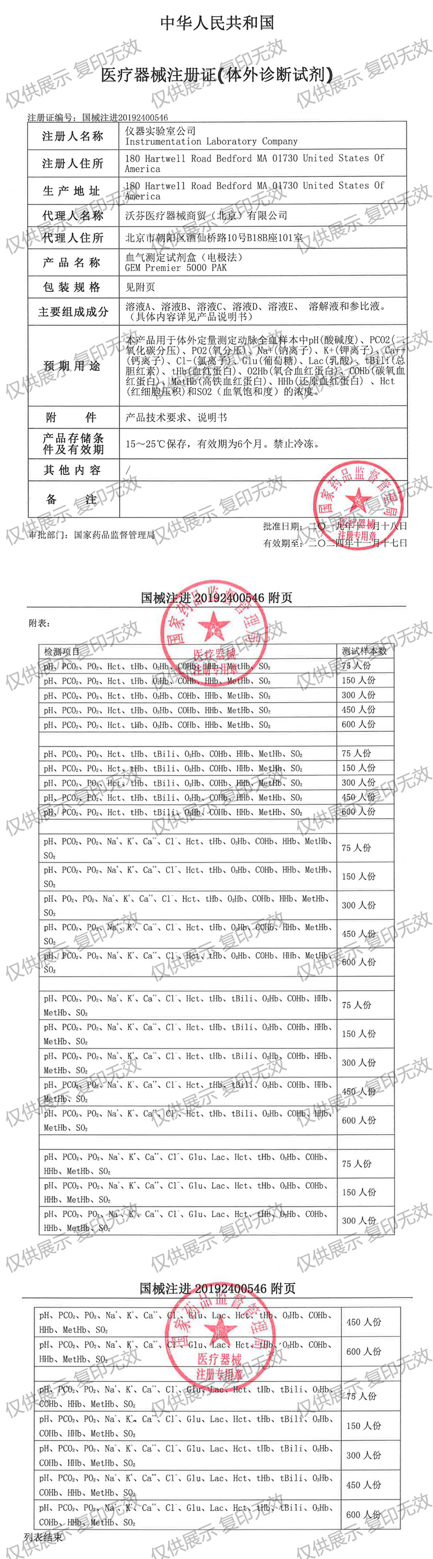 沃芬GEM5000血?dú)庠噭┖凶?cè)證編號(hào):國(guó)械注20192400546